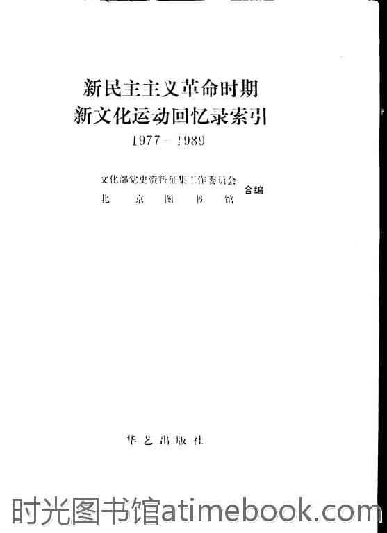 | 网盘路径:/时光图书馆珍藏系列/书籍文件/老图书/《新.民.主.主.义.革.命.时.期新.文.化.运.动.回.忆录索引_1977-1989》电子版合集.db | ||