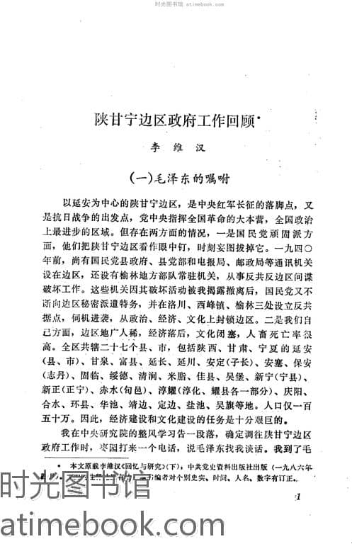 网盘路径:/时光图书馆珍藏系列/书籍文件/老图书/《陕甘宁边区抗日民主根据地_回忆录卷》电子版合集.db