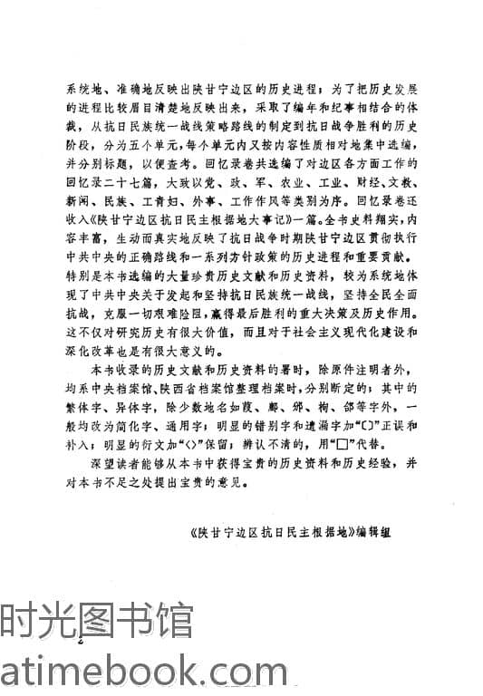 网盘路径:/时光图书馆珍藏系列/书籍文件/老图书/《陕甘宁边区抗日民主根据地_文献卷_上》电子版合集.db