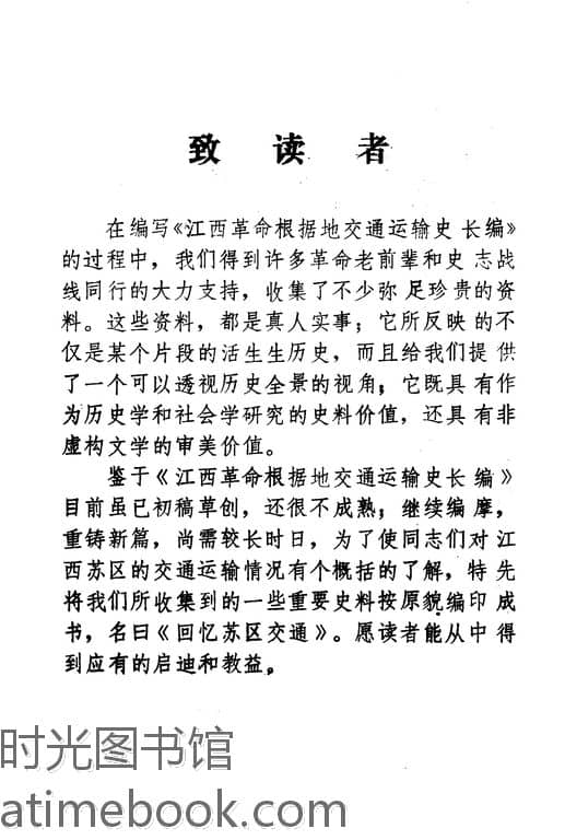 | 网盘路径:/时光图书馆珍藏系列/书籍文件/老图书/《回忆苏区交通(苏区交通史料选编)》电子版合集.db | ||