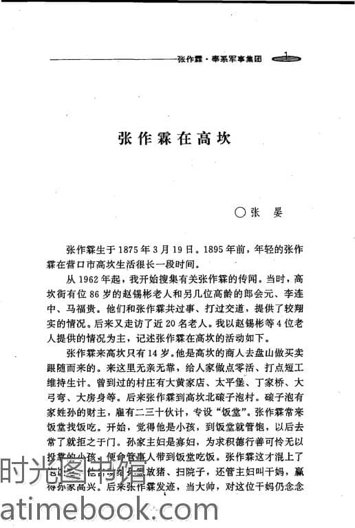 | 网盘路径:/时光图书馆珍藏系列/书籍文件/老图书/《辽宁文史资料精萃_张作霖·奉系军事集团》电子版合集.db | ||