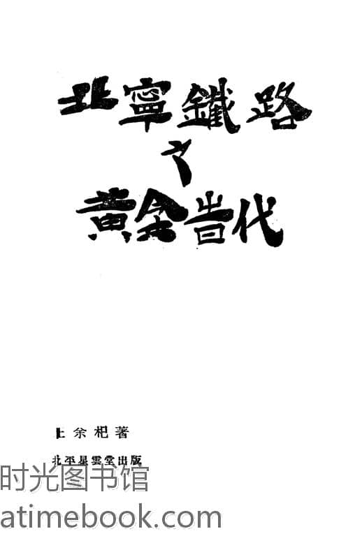 | 网盘路径:/时光图书馆珍藏系列/书籍文件/老图书/《北宁铁路之黄金时代》电子版合集.db | ||