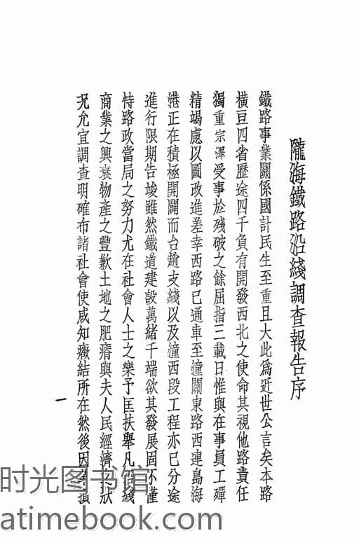 | 网盘路径:/时光图书馆珍藏系列/书籍文件/老图书/《二十一年度陇海铁路全路调查报告》电子版合集.db | ||