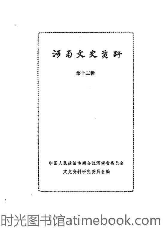 | 网盘路径:/时光图书馆珍藏系列/书籍文件/老图书/《河南文史资料_第13辑》电子版合集.db | ||