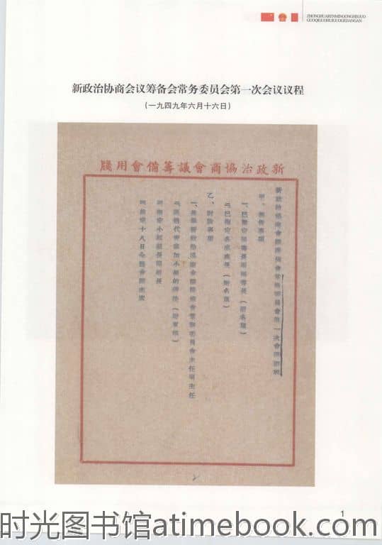 3-新政治协商会议筹备会常务委员会第一次会议议程(一九四九年六月十六日)
