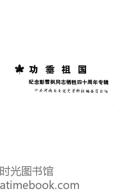 | 网盘路径:/时光图书馆珍藏系列/书籍文件/老图书/《功垂祖国_——_纪念彭雪枫同志牺牲四十周年专辑》电子版合集.db | ||