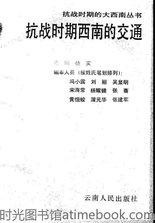 | 网盘路径:/时光图书馆珍藏系列/书籍文件/老图书/《抗战时期西南的交通》电子版合集.db | ||