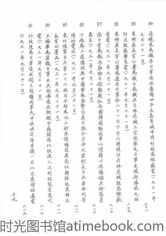 73-张学良为通告日军侵占沈阳营口安东长春等处的通电