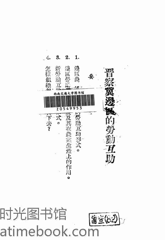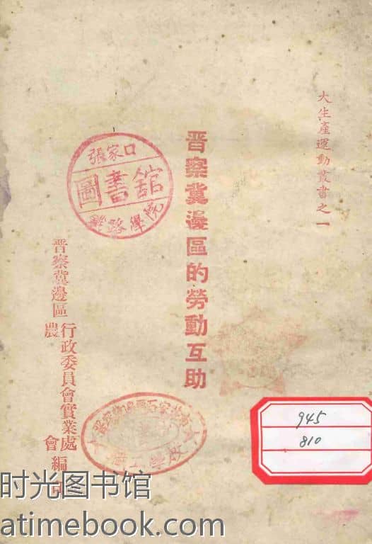 | 网盘路径:/时光图书馆珍藏系列/书籍文件/老图书/《晋察冀边区的劳动互助》电子版合集.db | ||