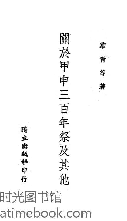 | 网盘路径:/时光图书馆珍藏系列/书籍文件/老图书/《关于甲申三百年祭及其他》电子版合集.db | ||
