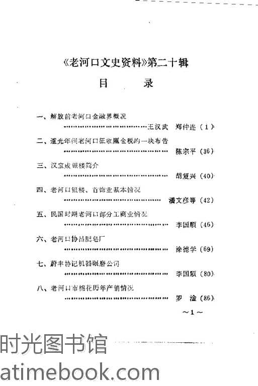 | 网盘路径:/时光图书馆珍藏系列/书籍文件/老图书/《老河口文史资料_第20辑》电子版合集.db | ||