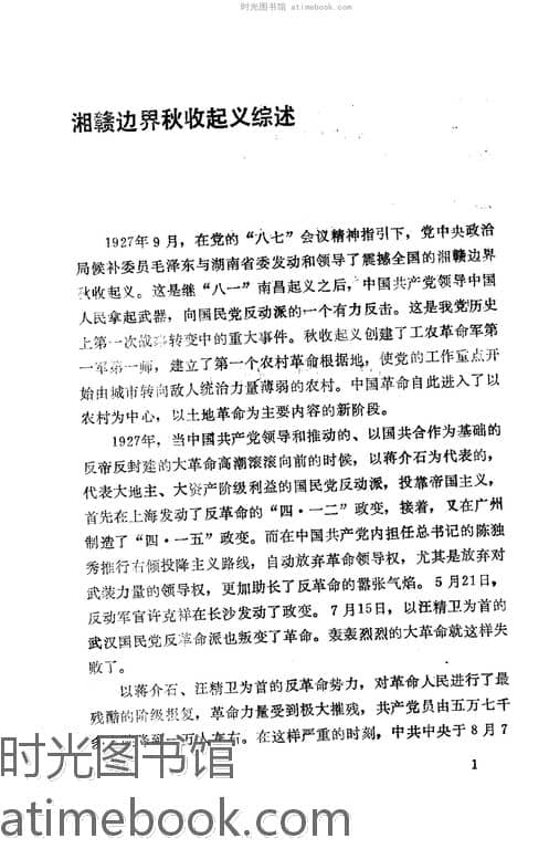 | 网盘路径:/时光图书馆珍藏系列/书籍文件/老图书/《湘赣边界秋收起义》电子版合集.db | ||