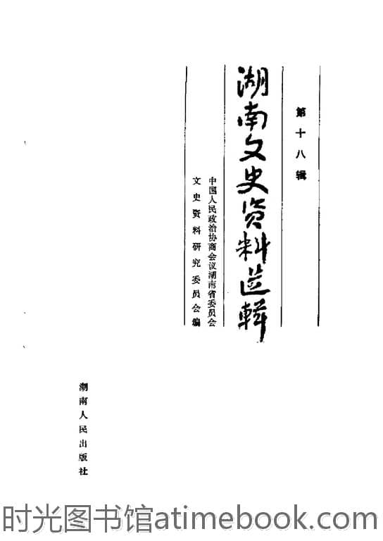 | 网盘路径:/时光图书馆珍藏系列/书籍文件/老图书/《湖南文史资料选辑_第18辑》电子版合集.db | ||