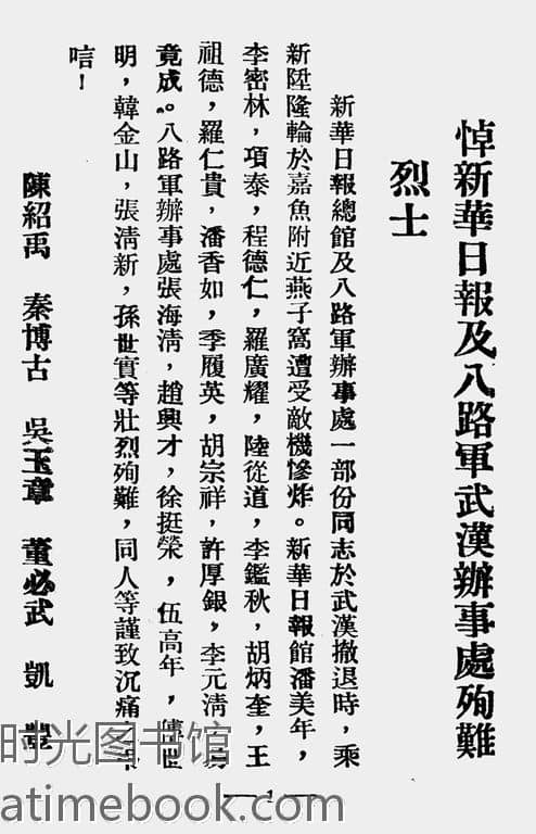| 网盘路径:/时光图书馆珍藏系列/书籍文件/老图书/《新升隆轮保卫大武汉殉难同志纪念册》电子版合集.db | ||