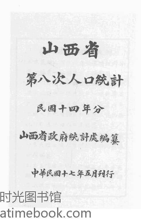 | 网盘路径:/时光图书馆珍藏系列/书籍文件/老图书/《山西省第八次人口统计_民国十四年分》电子版合集.db | ||