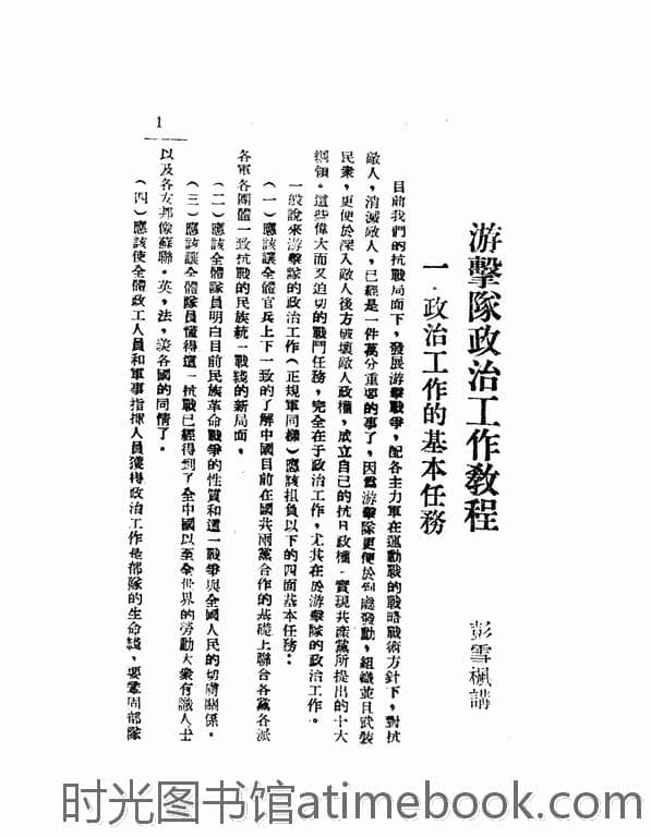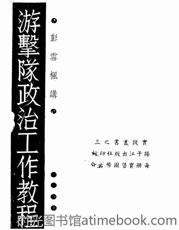 | 网盘路径:/时光图书馆珍藏系列/书籍文件/老图书/《游击队政治工作教程》电子版合集.db | ||