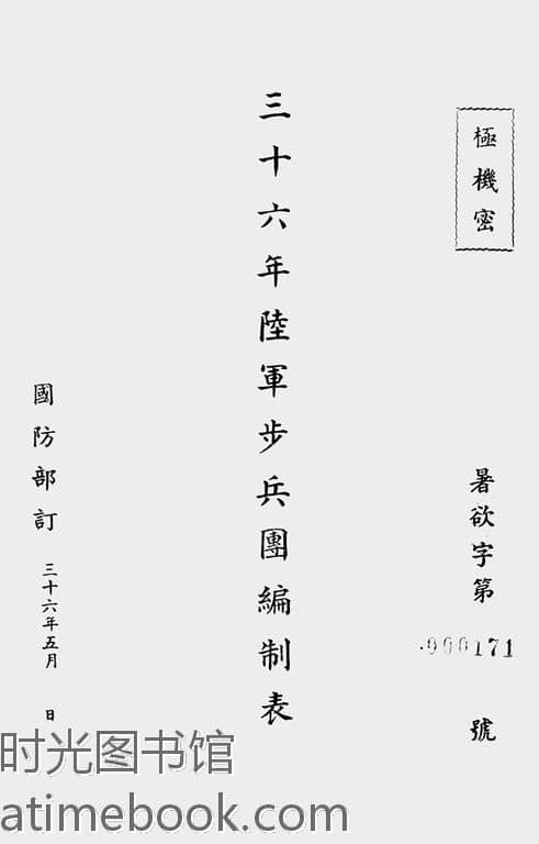 | 网盘路径:/时光图书馆珍藏系列/书籍文件/老图书/《三十六年陆.军.步.兵.团.编.制表》电子版合集.db | ||