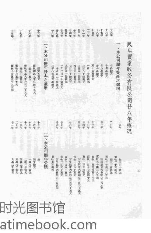 | 网盘路径:/时光图书馆珍藏系列/书籍文件/老图书/《民生实业股份有限公司二十八年概况》电子版合集.db | ||