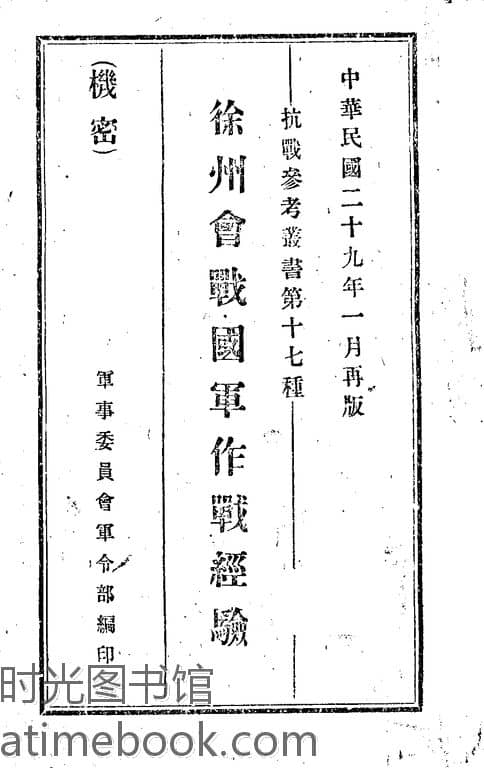 | 网盘路径:/时光图书馆珍藏系列/书籍文件/老图书/《徐州会战国军作战经验》电子版合集.db | ||