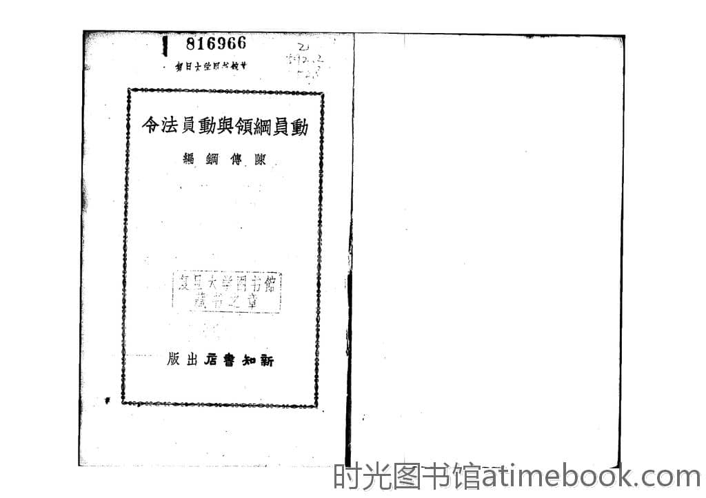 | 网盘路径:/时光图书馆珍藏系列/书籍文件/老图书/《动员纲领与动员法令》电子版合集.db | ||