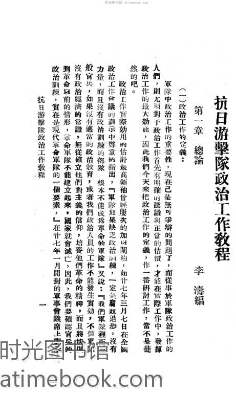 | 网盘路径:/时光图书馆珍藏系列/书籍文件/老图书/《抗日游击队政治工作教程》电子版合集.db | ||