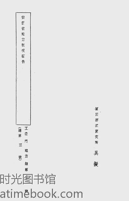 | 网盘路径:/时光图书馆珍藏系列/书籍文件/老图书/《安徽省地方概况报告》电子版合集.db | ||