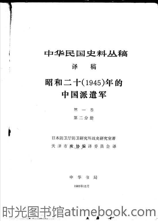 | 网盘路径:/时光图书馆珍藏系列/书籍文件/老图书/《昭和二十(1945)年的中国派遣军_第1卷第2分册》电子版合集.db | ||