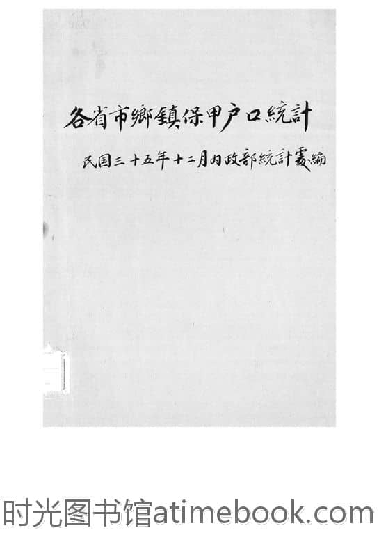 | 网盘路径:/时光图书馆珍藏系列/书籍文件/老图书/《各省市乡镇保甲户口统计》电子版合集.db | ||