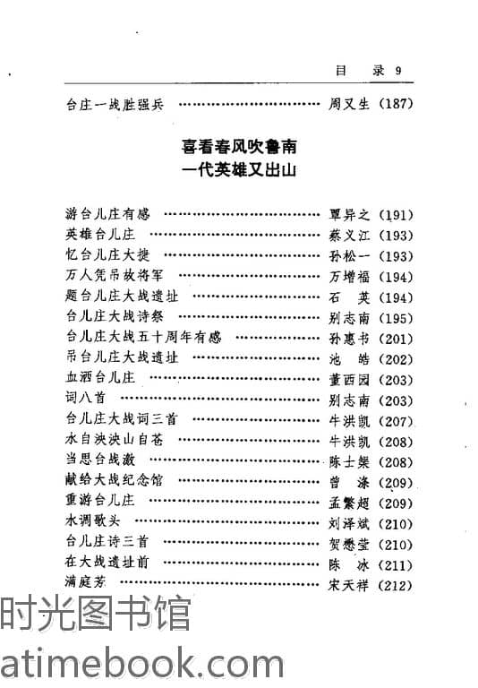 | 网盘路径:/时光图书馆珍藏系列/书籍文件/老图书/《台儿庄大战诗词选》电子版合集.db | ||