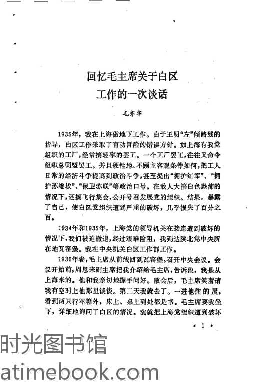 2-回忆毛主席关于白区工作的一次谈话(毛齐华)