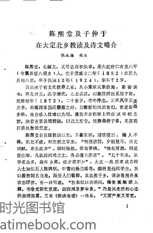 2-陈熙堂及子仲于在大定北乡教读及诗文略介 张永椿供稿