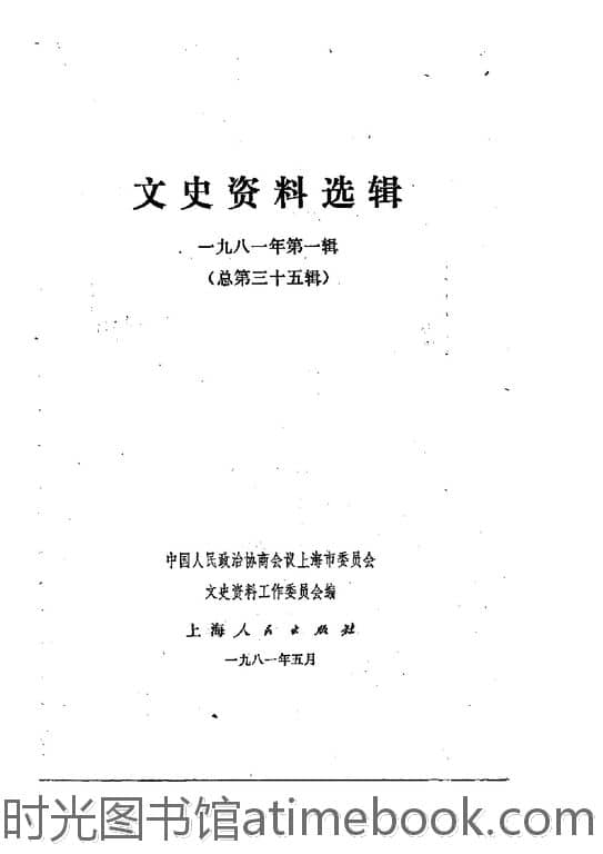 | 网盘路径:/时光图书馆珍藏系列/书籍文件/老图书/《上海文史资料选辑_1981年第1辑_总第35辑》电子版合集.db | ||