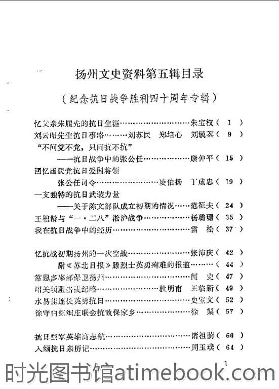 | 网盘路径:/时光图书馆珍藏系列/书籍文件/老图书/《扬州文史资料_第5辑_纪念抗日战争胜利40周年专辑》电子版合集.db | ||
