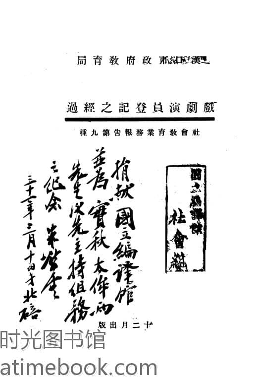 | 网盘路径:/时光图书馆珍藏系列/书籍文件/老图书/《戏剧演员登记之经过》电子版合集.db | ||