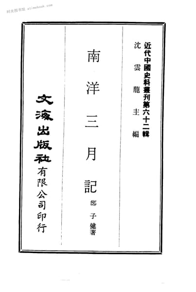 | 网盘路径:/时光图书馆珍藏系列/书籍文件/老图书/《南洋三月记》电子版合集.db | ||