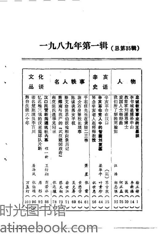 | 网盘路径:/时光图书馆珍藏系列/书籍文件/老图书/《武汉文史资料_1989年_第1辑_总第35辑》电子版合集.db | ||