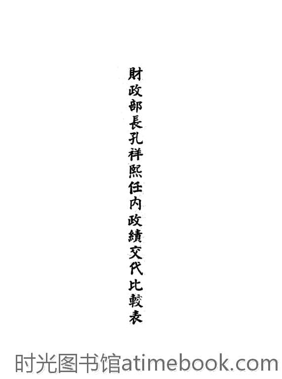 | 网盘路径:/时光图书馆珍藏系列/书籍文件/老图书/《财政部长孔祥熙任内政绩交代比较表》电子版合集.db | ||