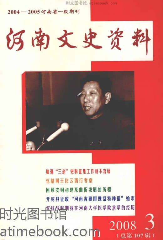| 网盘路径:/时光图书馆珍藏系列/书籍文件/老图书/《河南文史资料_2008年_第3辑_总第107辑》电子版合集.db | ||