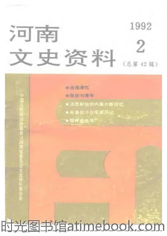 | 网盘路径:/时光图书馆珍藏系列/书籍文件/老图书/《河南文史资料_第42辑》电子版合集.db | ||