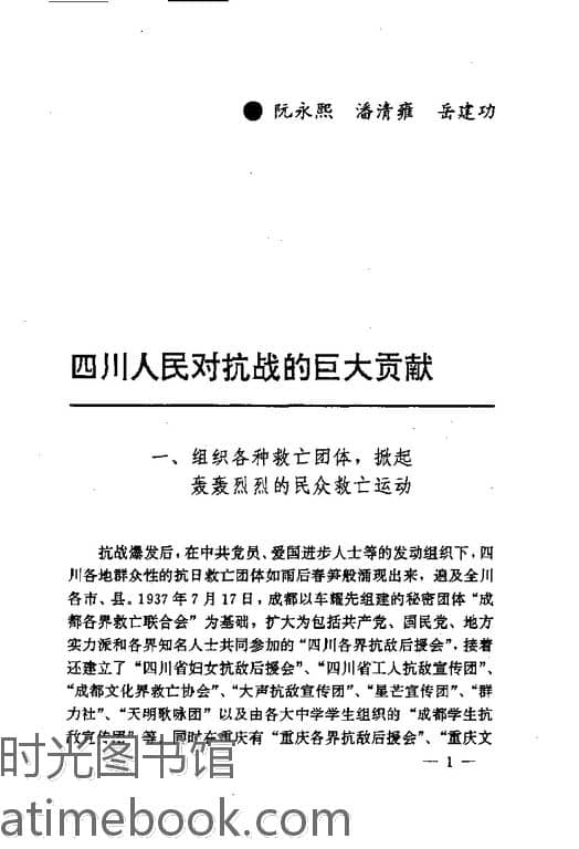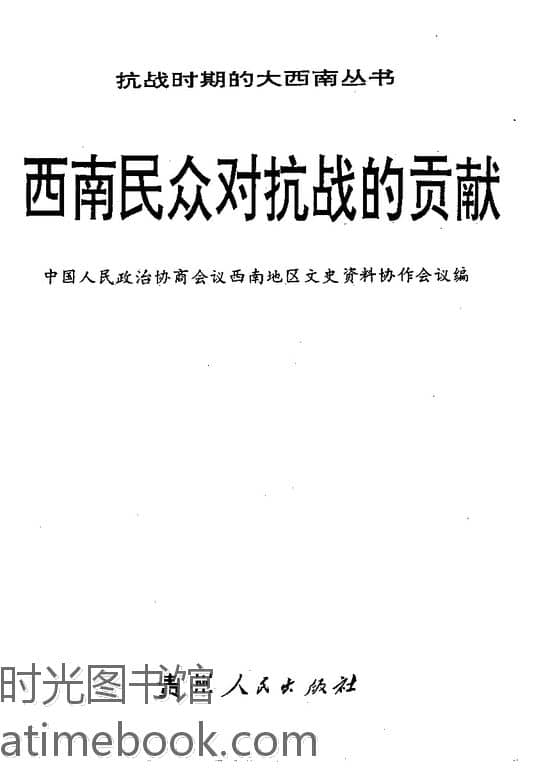 | 网盘路径:/时光图书馆珍藏系列/书籍文件/老图书/《西南民众对抗战的贡献》电子版合集.db | ||