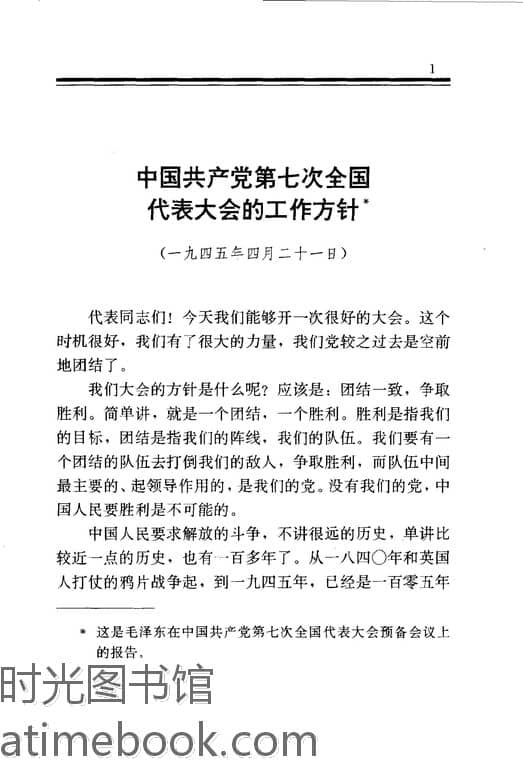 | 网盘路径:/时光图书馆珍藏系列/书籍文件/老图书/《毛泽东在七大的报告和讲话集》电子版合集.db | ||