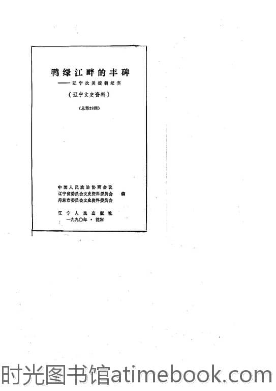 | 网盘路径:/时光图书馆珍藏系列/书籍文件/老图书/《辽宁文史资料_总第29辑(_鸭绿江畔的丰碑——辽宁抗美援朝纪实)》电子版合集.db | ||