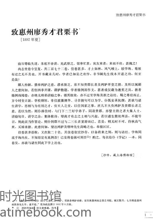 2-致惠州廖秀才君栗书[ 1892年夏]
