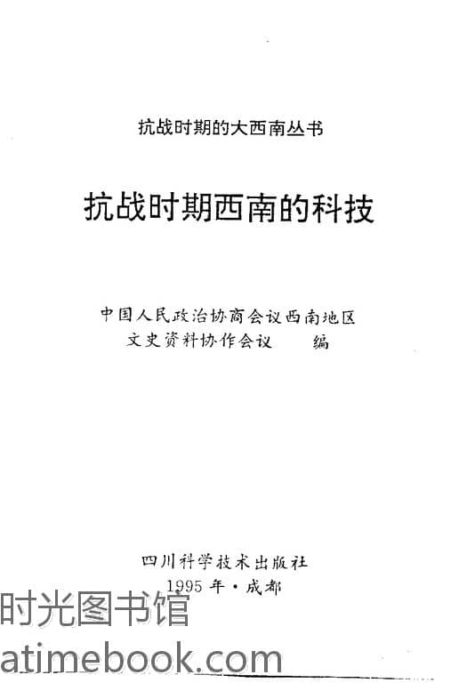 | 网盘路径:/时光图书馆珍藏系列/书籍文件/老图书/《抗战时期西南的科技》电子版合集.db | ||