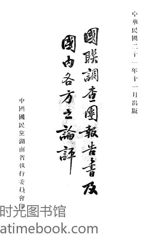 网盘路径:/时光图书馆珍藏系列/书籍文件/老图书/《国联调查团报告书及国内各方之论评》电子版合集.db