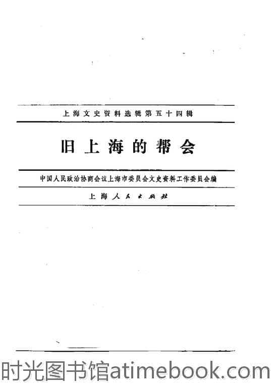 | 网盘路径:/时光图书馆珍藏系列/书籍文件/老图书/《上海文史资料选辑_第54辑_旧上海的帮会》电子版合集.db | ||
