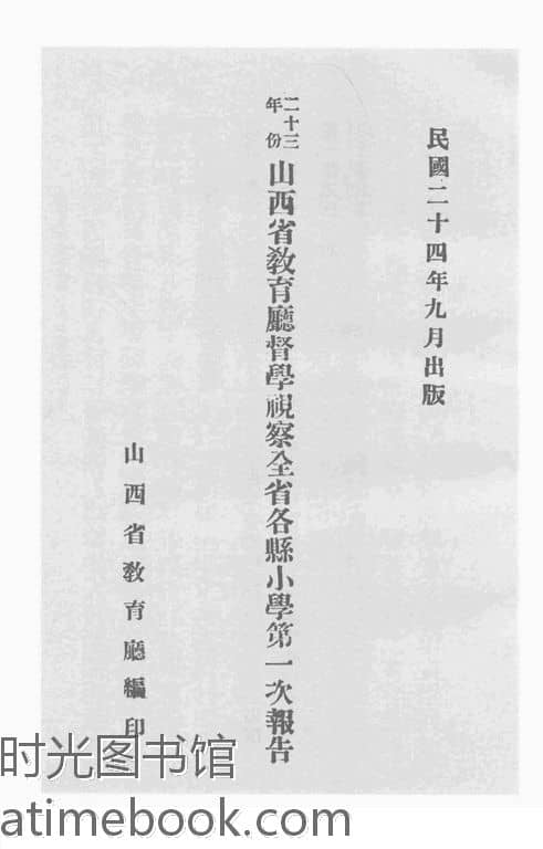 | 网盘路径:/时光图书馆珍藏系列/书籍文件/老图书/《二十三年份山西省教育厅督学视察全省各县小学第一次报告》电子版合集.db | ||