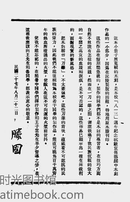 | 网盘路径:/时光图书馆珍藏系列/书籍文件/老图书/《国立艺专抗敌木刻选第一集》电子版合集.db | ||