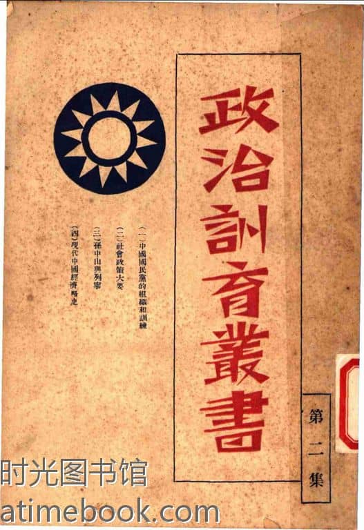 | 网盘路径:/时光图书馆珍藏系列/书籍文件/老图书/《政治训育丛书_第二集》电子版合集.db | ||