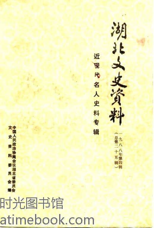 网盘路径:/时光图书馆珍藏系列/书籍文件/老图书/《湖北文史资料_1988年_第4辑_总第25辑_湖北近现代名人史料专辑》电子版合集.db